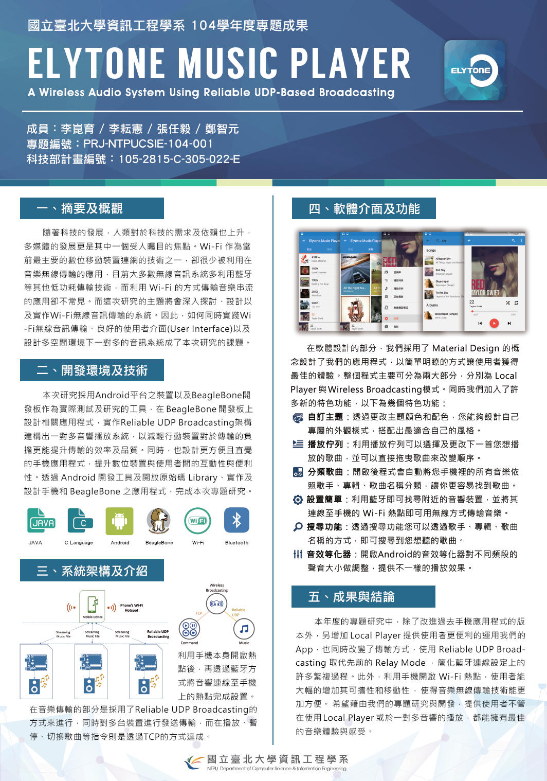 2016 資工系104學年度專題成果競賽第一名、票選最佳人氣獎