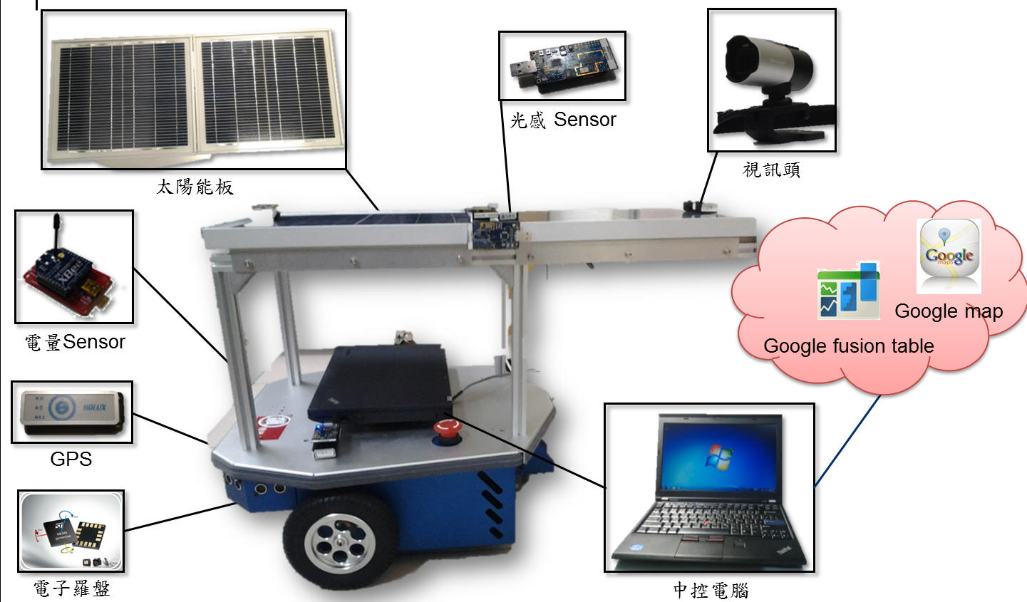 2012 (臺北大學資工系) 行動者八號 獲獎作品 "綠能巡弋者" 隊員:李宜璟(甄試上中央大學資工所)、 施旻錞(就讀臺北大學資工所)、姜文林 (臺北大學資工所畢)