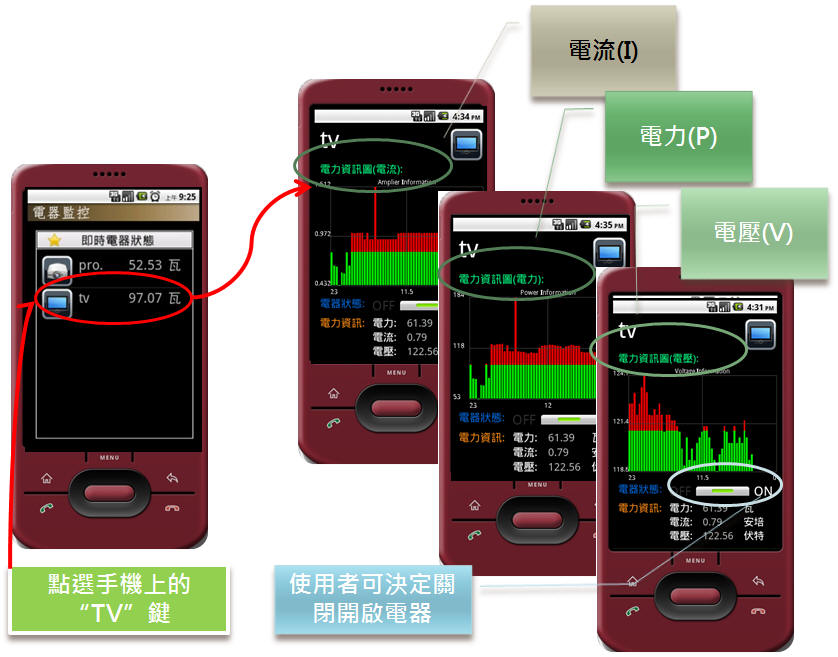 2012 (臺北大學資工系) 行動者九號 作品 "行動家用管理節能系統之設計與實作" 隊員:何南瑾(甄試上臺北大學資工所)、吳承儒(甄試上清華大學資工所)、沈宜璇(甄試上清華大學資工所)、柳嘉樺(甄試上中央大學資工所)、夏海平(甄試中央大學資工所備)